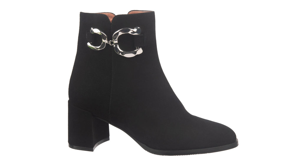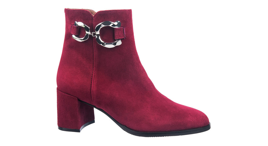 Available in brown, wine or black suede with a nickel trim and a 70mm heel. Fully leather lined and handcrafted in Italy.