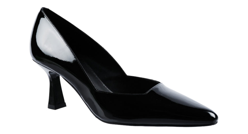 Soft patent leather court shoes available in wine or black with a 60mm heel