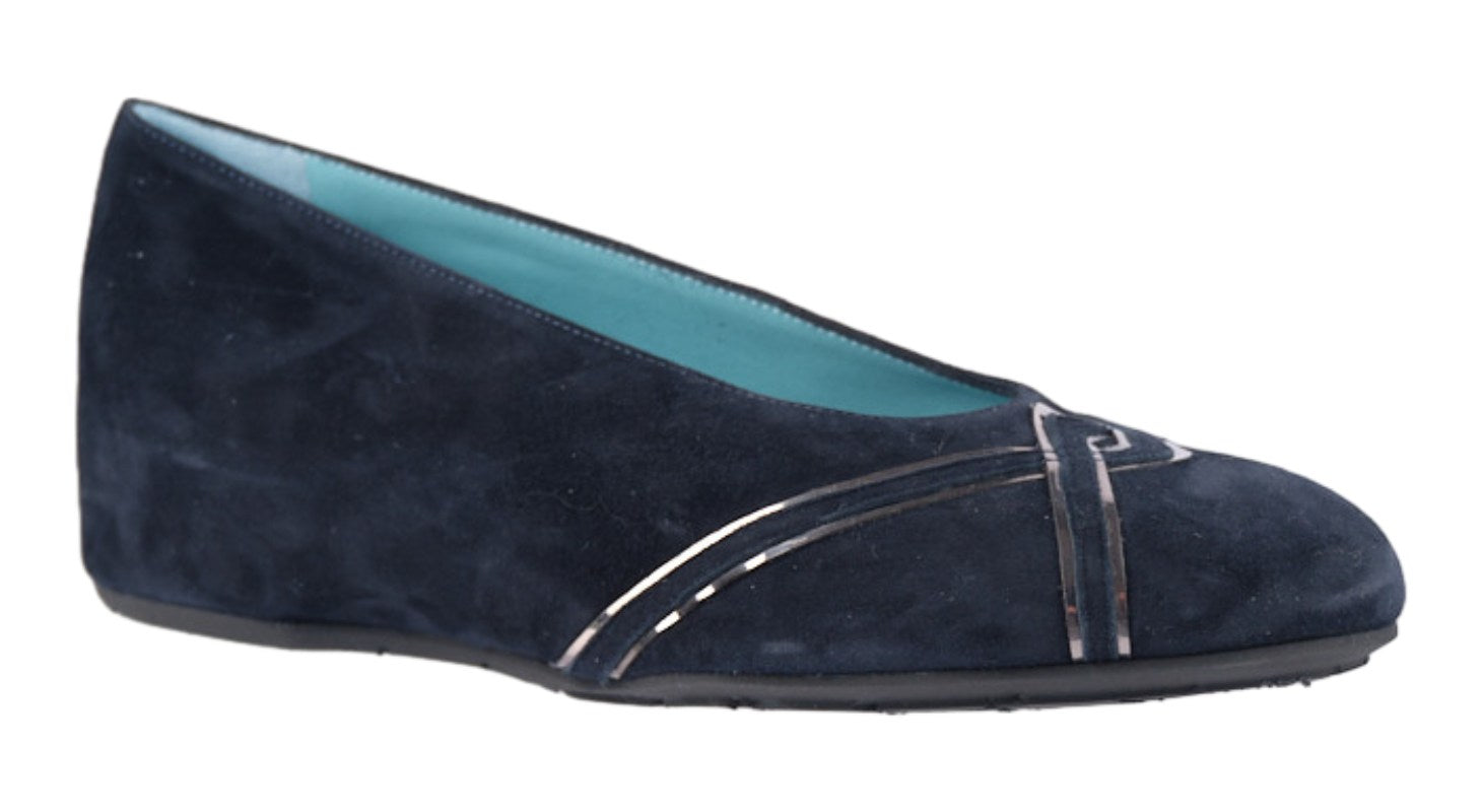 Navy suede pumps with met detail